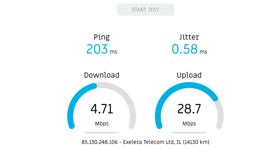 A page will open in a new tab. Click the “Start Test” button and watch as the upload and download speeds are tested in real time at your selected location.
