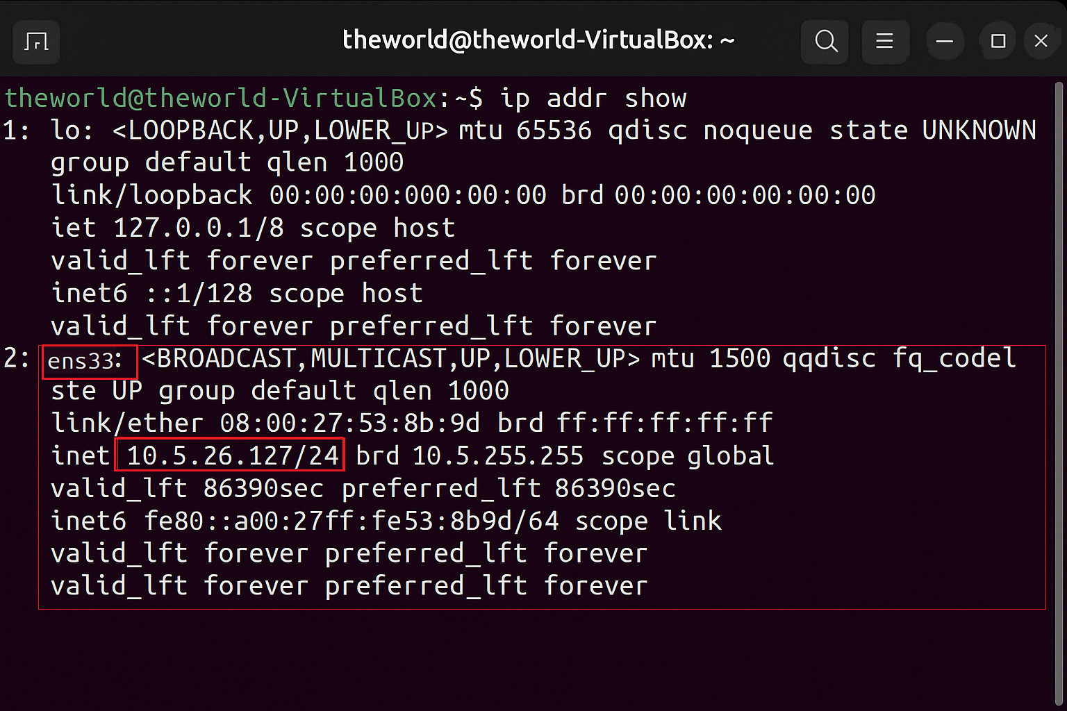 inet 192.168.1.10/24 brd 192.168.1.255 scope global ens33