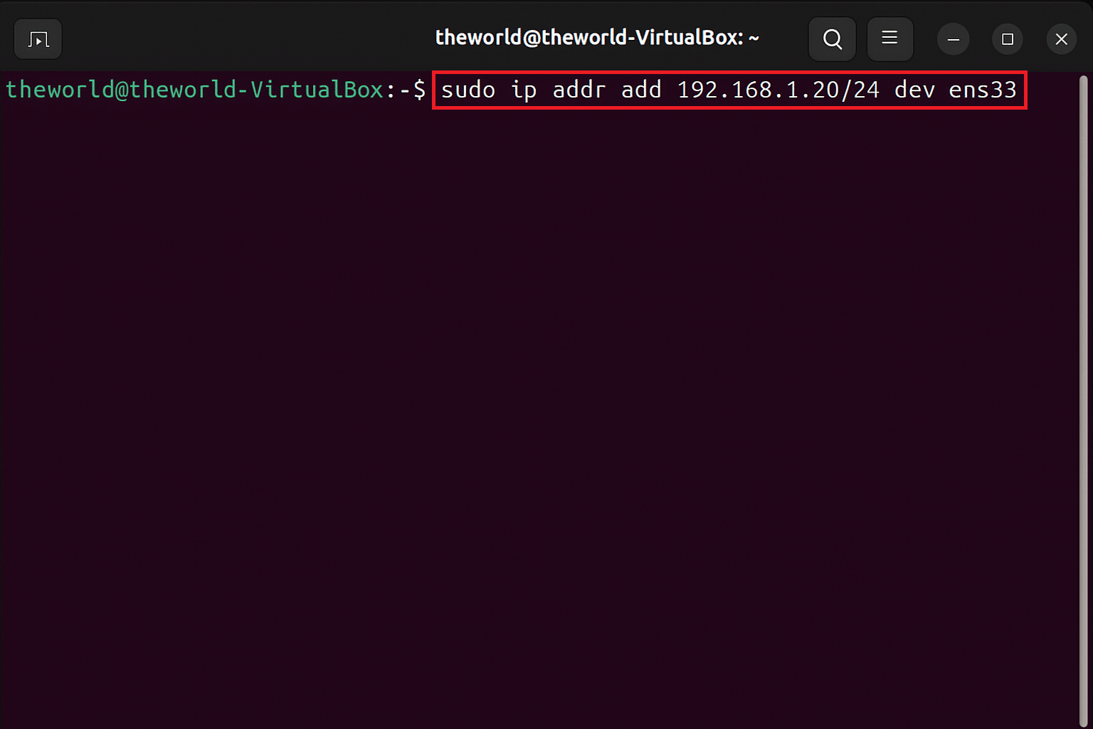sudo ip addr add 192.168.1.20/24 dev ens33