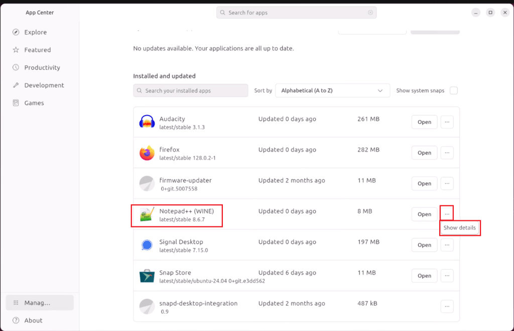 If you have installed applications using Snap repository and the above commands don’t work for you, use the below command. The rest of the procedure is the same.